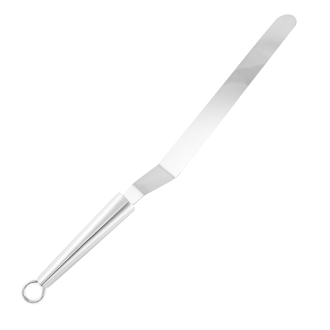 С помощью этой лопатки Вы без труда сможете выровнять крем на торте, распределить шоколад или глазурь по поверхности кондитерского изделия. Узкой лопаткой можно наносить и распределять различные соусы . Ручка и рабочая поверхность из стали.